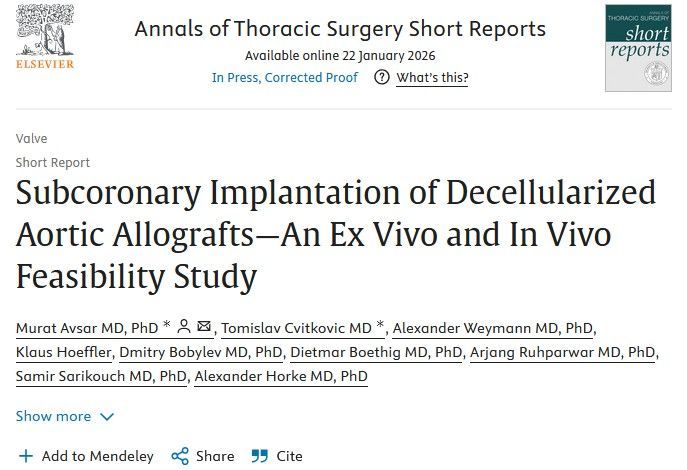 Subcoronary implantation of decellularized aortic homografts, which may be favourable especially in children as it avoids the need for a coronary transfer, was explored in acute animal models including modification to a single-suture technique. The publication is available Open Access here: